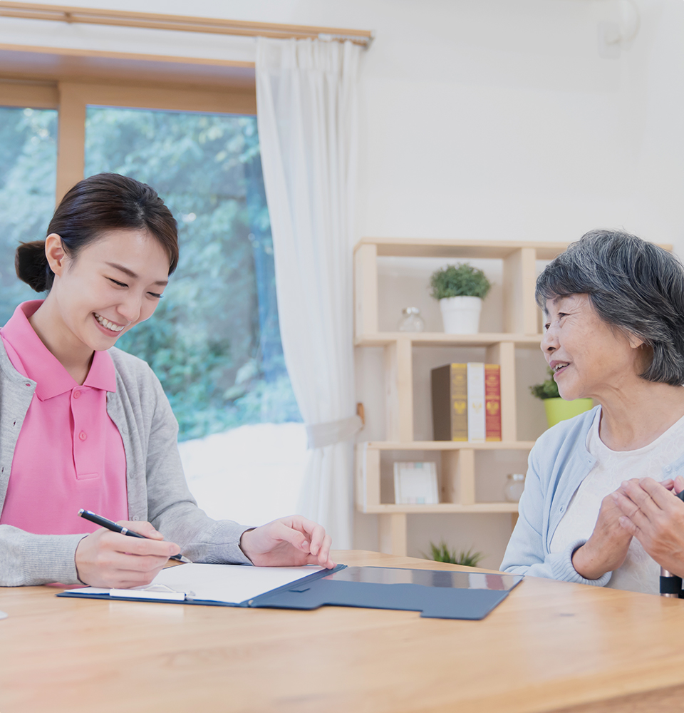 利用者様がスムーズに介護保険サービスを受けられるよう連絡・調整を行うほか、利用者様やご家族からの相談を受けサポートするのもケアマネジャーの役割です。利用者様とご家族から日常生活の中でのお困り事などを丁寧にヒアリングし、利用者様1人1人に寄り添い、それぞれに合ったケアプランを作成します。